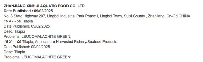 kaiyun官方下载,检测出孔雀石绿!广东一家罗非鱼出口企业被美国FDA列入进口