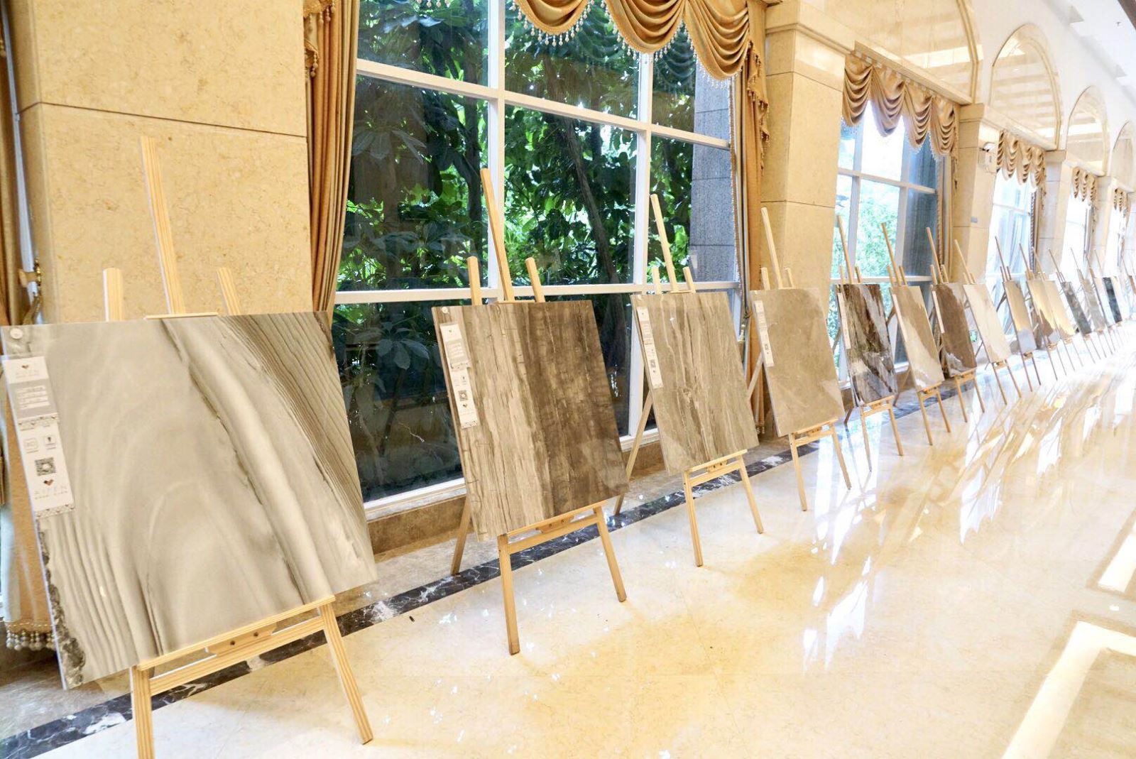 走进发布会现场,可看到AIFEN瓷砖的新品整齐划一地陈列在走廊两侧,据了解,AIFEN瓷砖的产品架构多数是现代主流产品,色彩、纹理以现代简约、时尚轻奢风格为主。而种类主要是瓷抛砖和通体负离子大理石瓷砖,除常规尺寸600X600,800X800外,还包括800mmX800mmX13mm、600mmX1200mmX12mm,同时推出了750mmX1500mm、900mmX1800mm规格大板通体大理石瓷砖。据AIFEN瓷砖销售总监邵一森称,AIFEN瓷砖集差异化,观赏性和实用性于一体,品质和性价比会在这次招商中凸显价值,促进成交率。
